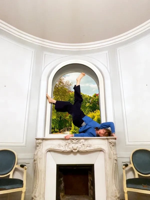 Kathryn Marshall is an American artist, storyteller and dancer based in France. Her performances, which are both immersive and interactive, aim to alter and subvert the way we perceive reality. Working in situ, she weaves together her observations of the site in question, the spectators, and anecdotes from her personal life into a living tapestry that addresses a universal theme. With a fair dose of humor, she attempts to dismantle the dualistic conceptions that separate and confine us - in order to provoke emancipatory reflections that foster a deeper connection with oneself, with one's community, and with one's environment. Inspired by her research in philosophy, phenomenology, ecopsychology, trance rituals and neuroscience, she facilitates collective experiences on the interstice between care and play. Her work is imbued with color, satirical irony and childlike wonder.